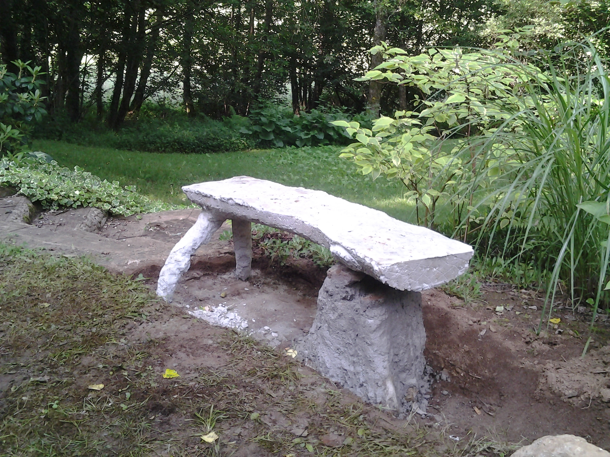 Banc de rocaille en construction